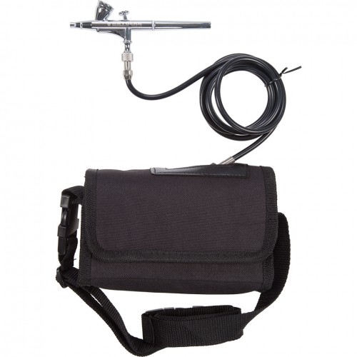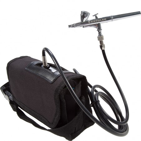 Nagyon csendesen, 2,1 bar nyomással működő airbrush készülék. A készlet tartalmazza az airbrush pisztolyt, kompresszort, akkumulátort és a táskát is. Más márkájú pisztolyok is csatlakoztathatók a kompresszorhoz.